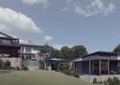 Our client sought our expertise to design a contemporary rustic residence for a property that posed a unique challenge. The task at hand was to seamlessly incorporate two garages, an additional basement garage, two guest apartment units, two inviting lounges, a large outdoor entertainment area, an elegant dining room, a dedicated pool room, and a stylishly appointed bar and kitchen onto a triangular-shaped property characterized by a notably steep slope.